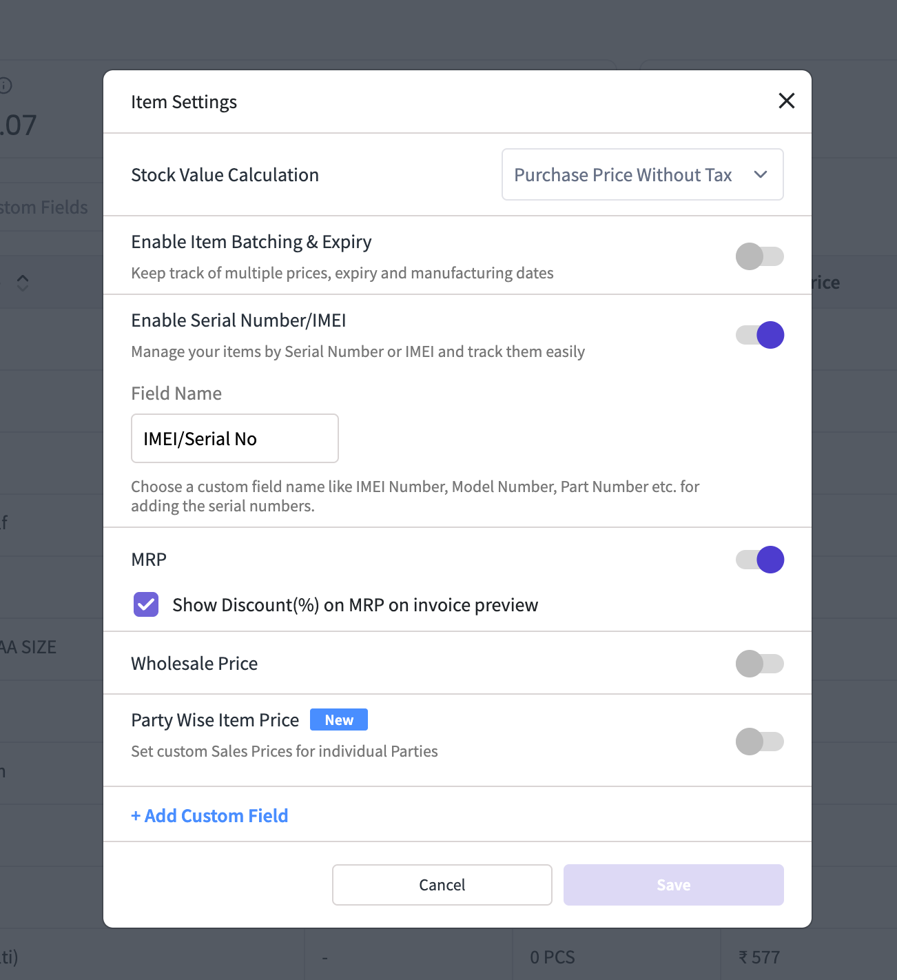Enabling/disabling MRP also controls the Discount on MRP checkbox. If you disable MRP, both get turned off.
