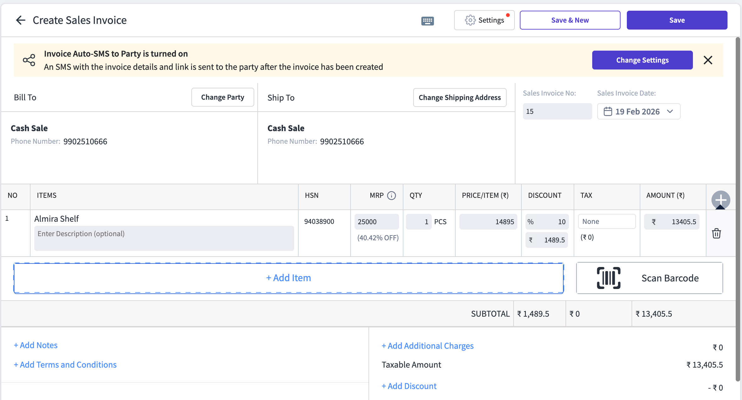 3. Invoice Preview & Final Invoice The discount on MRP appears on the invoice preview as well as the final printed/shared invoice. Your customer sees exactly how much they saved.